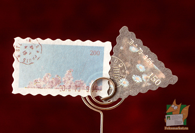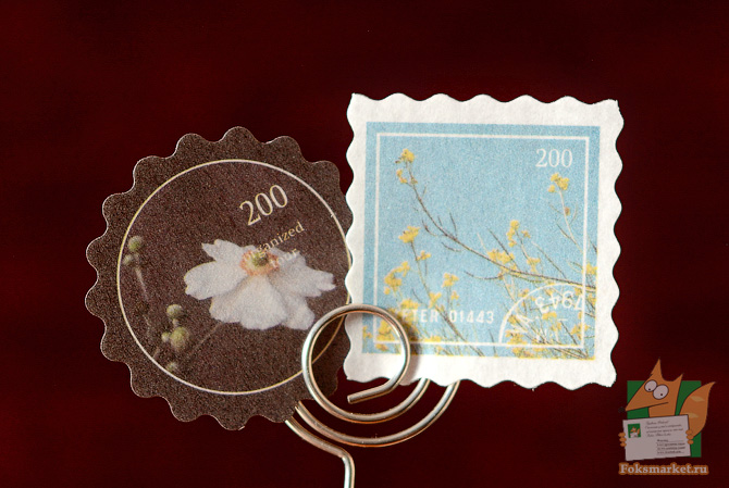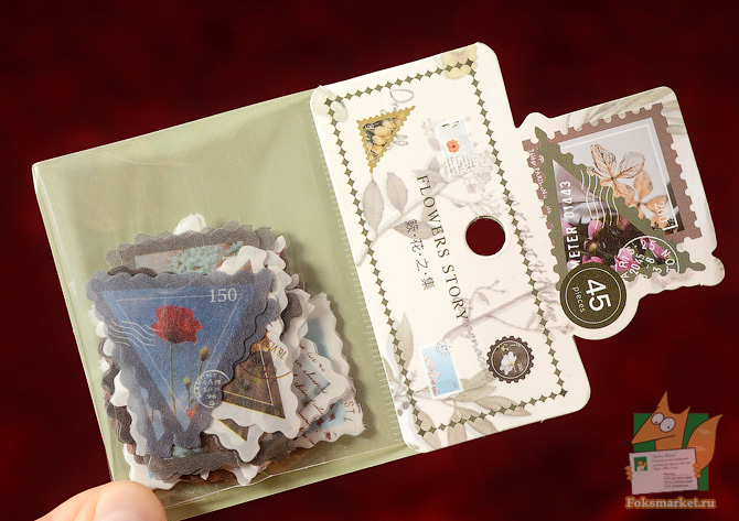Набор наклеек в виде марок: ПриродаНабор наклеек в виде марок: Природа. Очень стильнй набор наклеек в виде марок с цветочными мотивами. В наборе 45 наклеек. Наклейки в виде марок, края волнистые. Нижний слой, подложка - прозрачная плёнка. Верхний слой, сама наклейка - гибридный бумажный материал. Имеет текстуру льняной бумаги, полупрозрачный как калька, однако верхний слой мягкий и поддатливый. При отгибании держит форму, напоминает материю на клеевой основе. Слой наклейки тонкий, клейкий слой сильный. Наклейки разного размера, до 5 см.