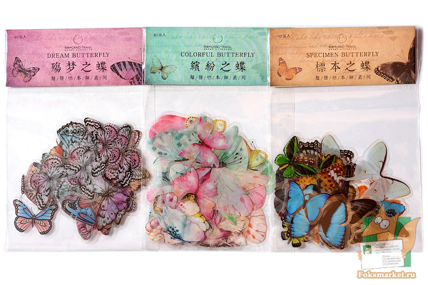 Наборы из 40 прозрачных наклеек: Чудесные бабочки