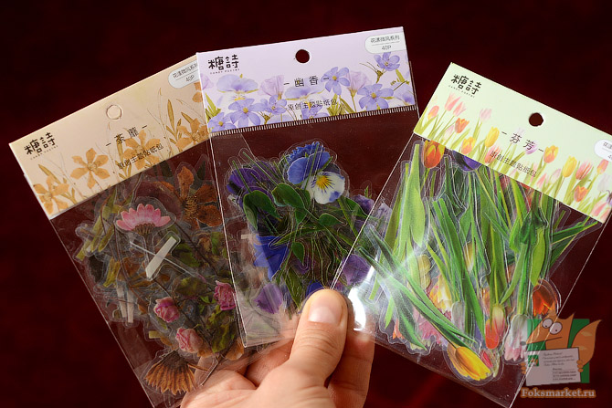 Наборы из 40 прозрачных наклеек: Цветочный рай