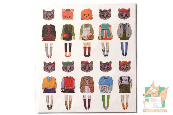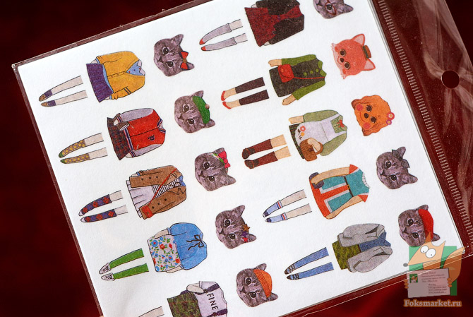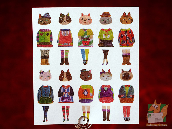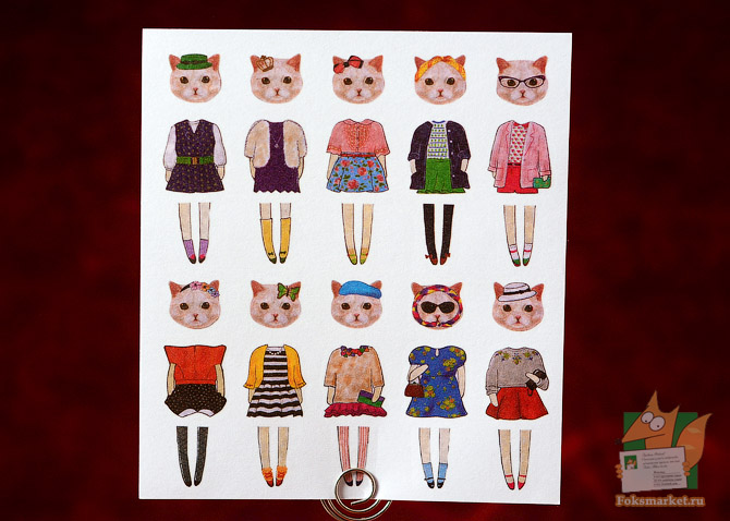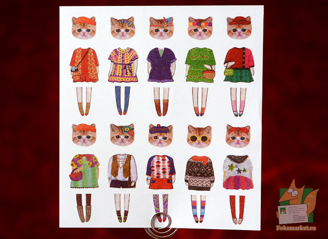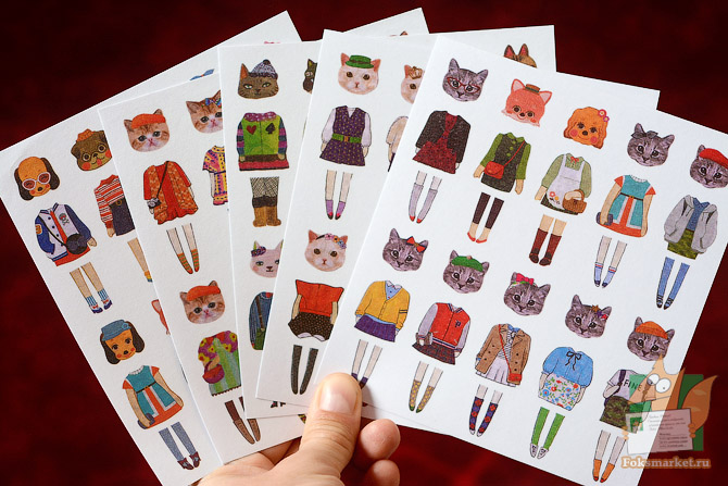 Наборы наклеек из 5 листов: Части кошекНаборы наклеек из 5 листов: Части кошек. Пять листов, наклейки бумажные, изображения на белом фоне. Каждая кошечка в сборке высотой примерно 6 см. Производство Япония. Размер листа: 13 х 14,5см.