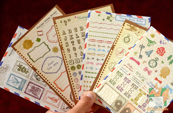 Набор наклеек из 6 листов: Винтажный набор для мейларта