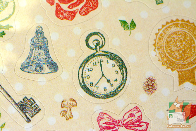 В наборе 6 различных листов наклеек на бумажной основе, с квадратной либо фигурной высечкой. Каждое изображение можно отклеить. Подойдёт для оформления дневников, мэйларта и посткроссинга.
