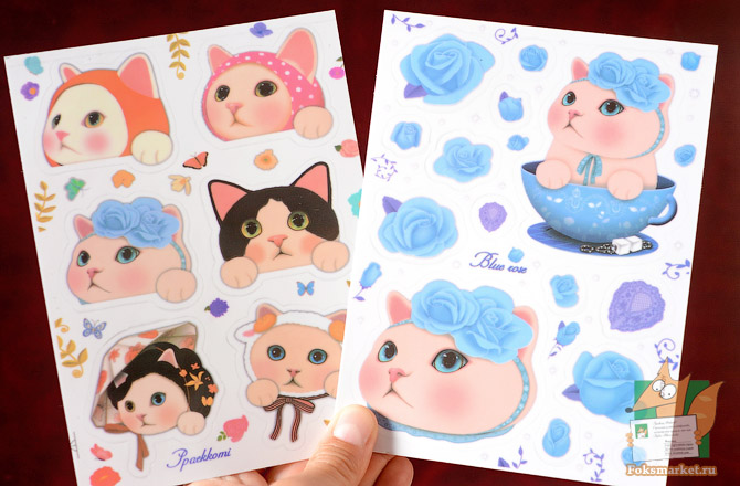 Наклейки из 7 листов: Jetoy большие листы. В наборе 7 больших листов наклеек с корейскими кошками Jetoy. Размеры наклеек до 10см. Подложка бумажная, сама наклейка на розрачной основе. Размер набора: 17х13см.