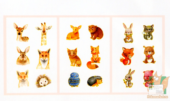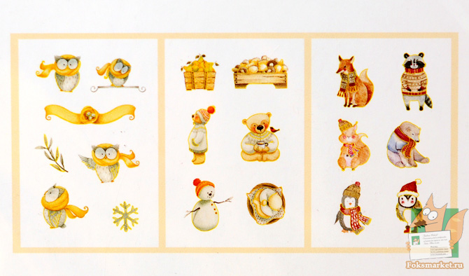 Наборы наклеек животные с золотым тиснением