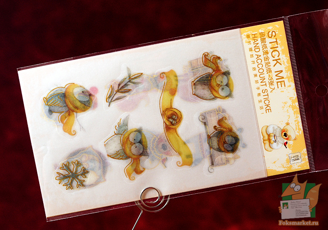 Наборы наклеек животные с золотым тиснением. Фигурные наклейки трёх видов. Выполнены на матовой ПВХ плёнки с золотым тиснением по краям. В каждом наборе по три листа, на каждом листе по шесть наклеек. Наклейки довольно большие, в среднем 4-5см каждая. Размер листов: 10 х 18см. Набор 1