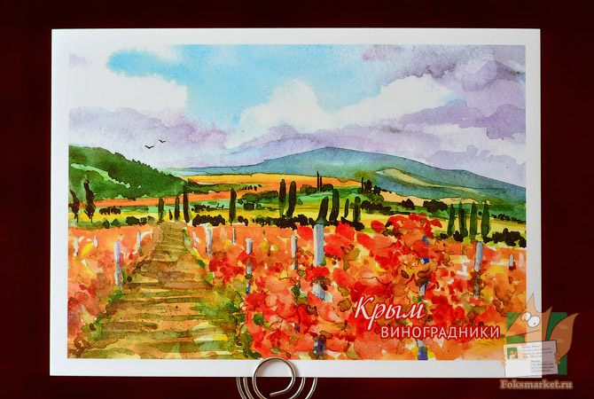 Открытка: Виноградники. Почтовые открытки с работами севастопольского художника Сергея Меркулова. Картон 240г/м2., оборот матовый. Размер открытки: 10.5 х 14,7см