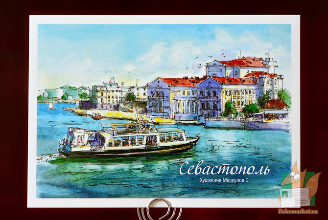 Открытка: Севастополь. Артбухта. Почтовые открытки с работами севастопольского художника Сергея Меркулова. Картон 240г/м2., оборот матовый. Размер открытки: 10.5 х 14,7см