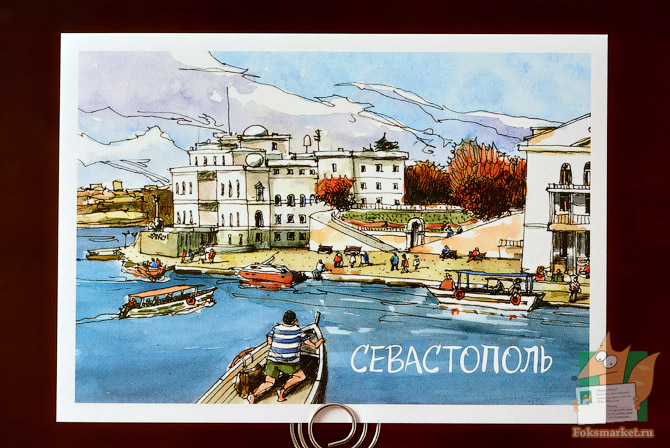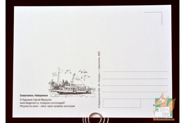 Открытка: Севастополь. Набережная. Почтовые открытки с работами севастопольского художника Сергея Меркулова. Картон 240г/м2., оборот матовый. Размер открытки: 10.5 х 14,7см