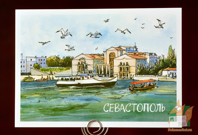 Открытка: Севастополь. Дворец детского и юношеского творчества. Почтовые открытки с работами севастопольского художника Сергея Меркулова. Картон 240г/м2., оборот матовый. Размер открытки: 10.5 х 14,7см