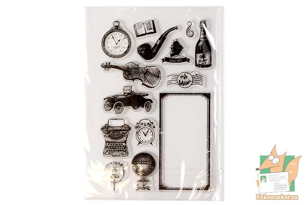 Набор штампов: Ретро. Силиконовые прозрачные мягкие штампы для оформления почтовых открыток, дневников, писем, скрапбукинга и т.д. Каждое изображение в наборе идет как отдельный штамп. Все штампы наклеены на защитную плёнку с которой перед использованием снимаются и переклеиваются на прозрачный акриловый блок или другой подходящий предмет с гладкой поверхностью, в результате чего получаем штамп готовый к использованию. Штамп прижимают к штемпельной подушке или губке смоченной чернилами и ставят оттиск на почтовой открытке, в дневнике и др.