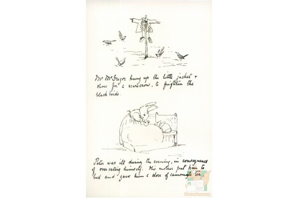 Одна из ста почтовых открыток из серии The World of Peter Rabbit Почтовая открытка отпечатана на качественном плотном картоне и имеет размер 15,3 х 9,8см. На обороте карточки находится логотип, подпись и разлинейка под почтовый адрес.